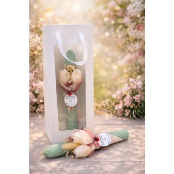 Η ανδρική μας λαμπάδα είναι το διαμάντι της συλλογής μας, φτιαγμένη από 100% αγνό μελισσοκέρι. Στολισμένη με δυο υπέροχες αρωματικές τουλίπες από σόγια, οι οποίες έπειτα μπορούν να χρησιμοποιηθούν ως wax melt. Αναμφίβολα θα κλέψει τα βλέμματα.