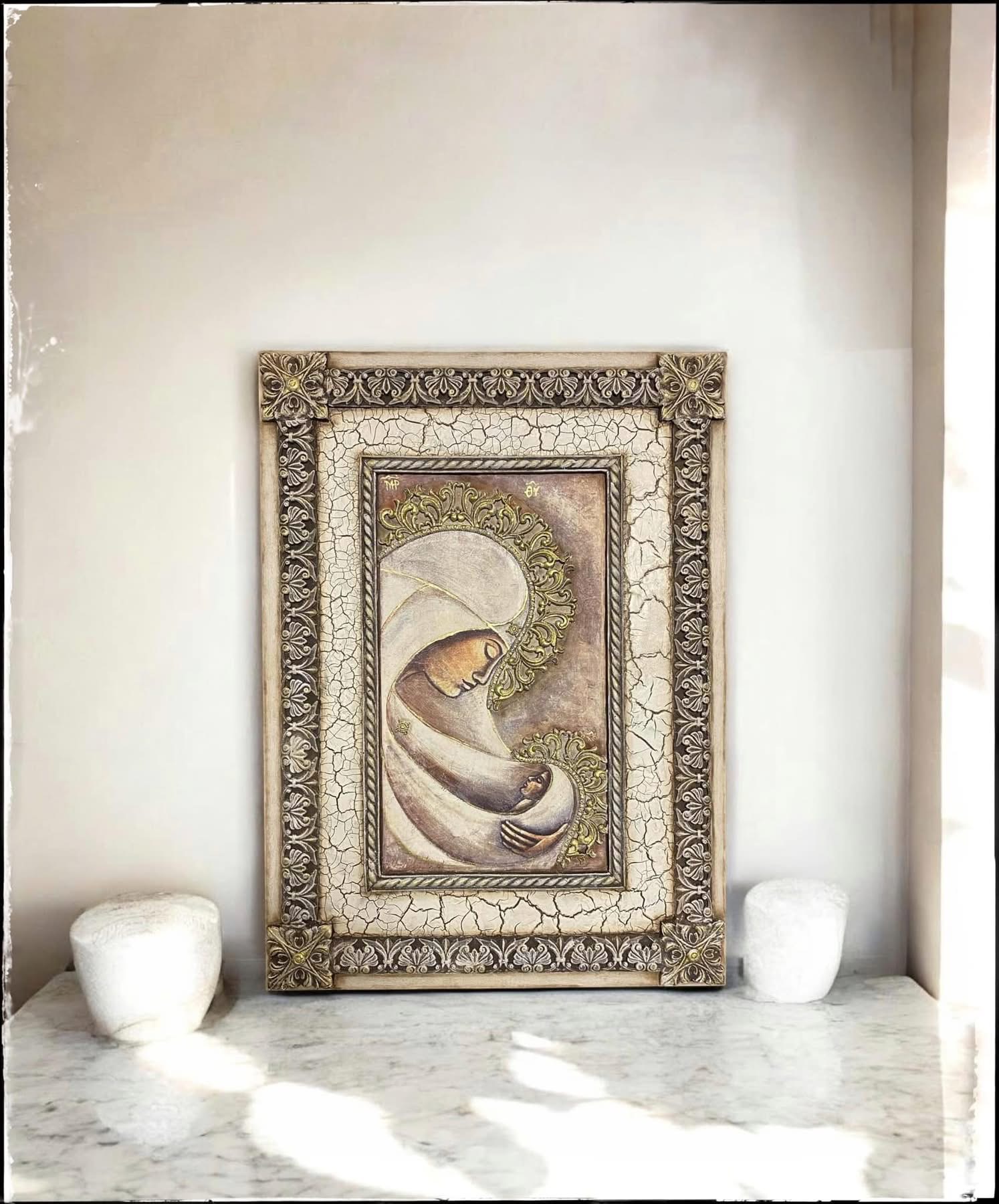 Μοναδικό χειροποίητο έργο τέχνης που απεικονίζει την Παναγία με τον μικρό Χριστό.