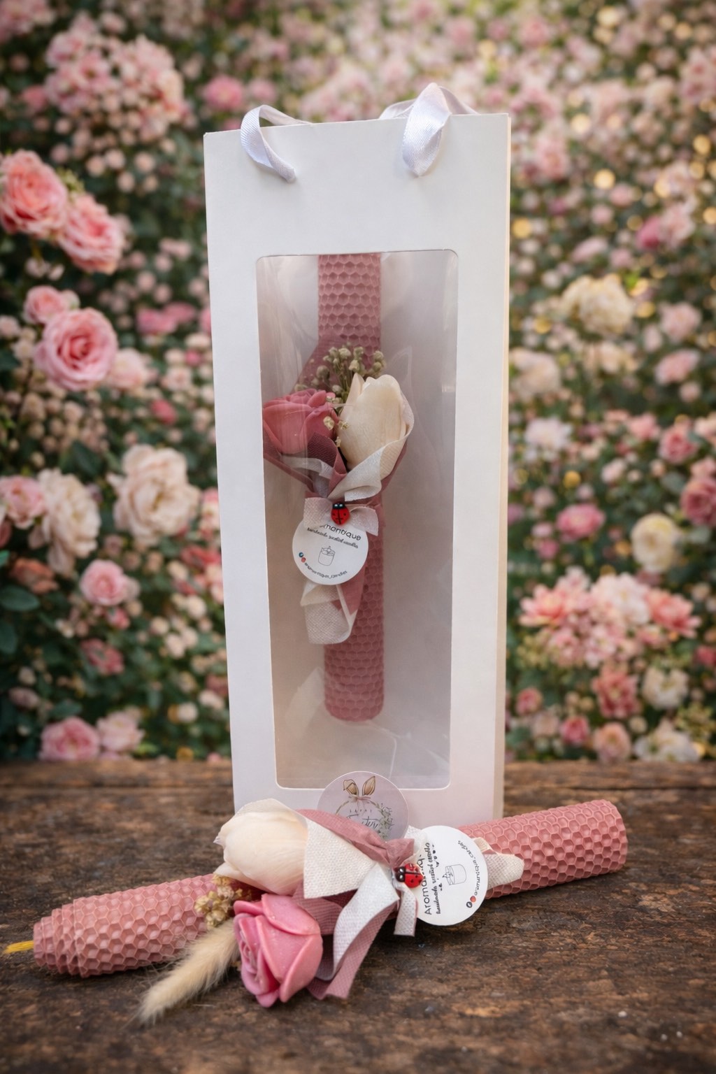 Οι λαμπάδες μας είναι χειροποίητες, φτιαγμένες από 100% κερί μέλισσας.